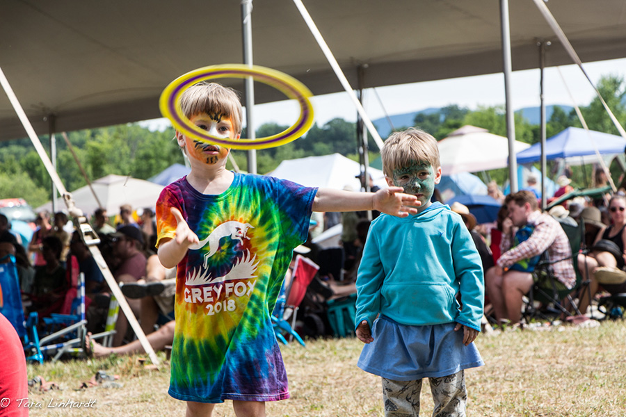Saturday at Grey Fox is possibly the biggest day, full of everything you might think of for a festival, and then some. Music on the multiple stages, yoga, meditation, the campground parade, video interviews, dancing, people of all ages practicing their new licks and tunes, and the presentation of the winners of this year’s Bill Vernon scholarships toward college for four lucky and very deserving young people.