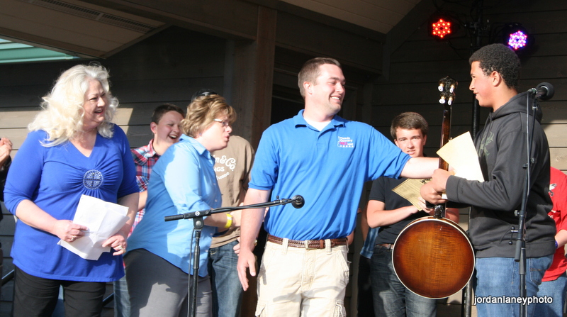 Another addition was the first annual Ralph D. Epperson Musical Heritage Award presented by Deborah Epperson Stringer. Ralph D. Epperson, the founder of WPAQ radio station was a true pioneer of early radio in southern Appalachia. The story of his work has been collected and presented in documentary format by Jordan Nance in the film Broadcast—A Man and His Dreams. The award supports and honors an individual committed to continuing traditional string music traditions. The first winner was Trajan Wellington from Jefferson, North Carolina. Trajan is one of Eric Hardin’s banjo students and hopes to use his newly awarded banjo to continue learning Scruggs-style technique.