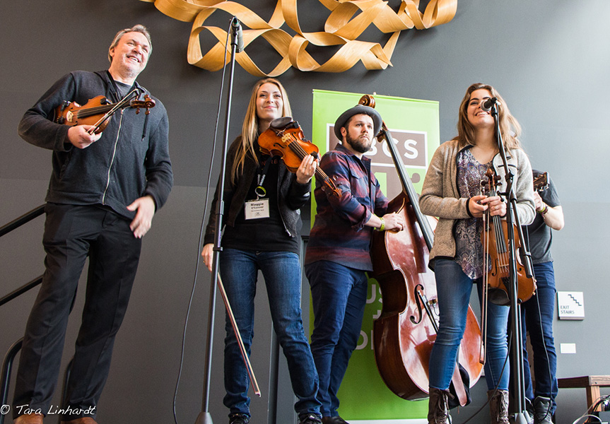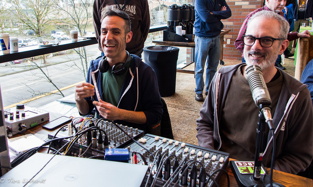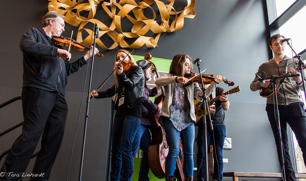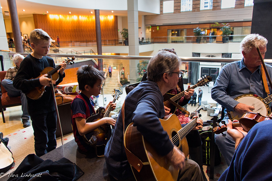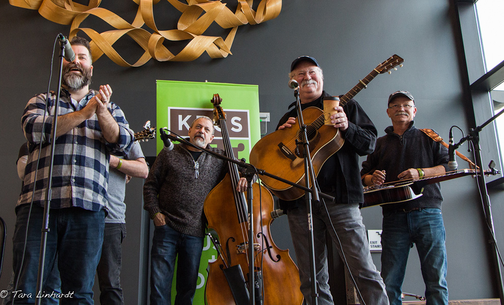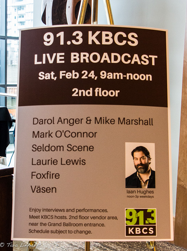 Saturday had full stages, hallways full of jams, workshops, led jams, dances, and all that one would expect, but but there was also a live radio broadcast you could watch as Iaan Hughes from KBCS 91.3 interviewed and introduced some of the big name bands as they played a few songs for the folks in radio land first thing in the morning. (The broadcast was from 9:00 a.m. – noon.) Hats off to the musicians who rose up and jumped right into a live, on air broadcast singing, picking, and even doing some yodeling, all before noon.