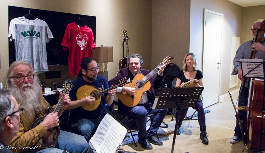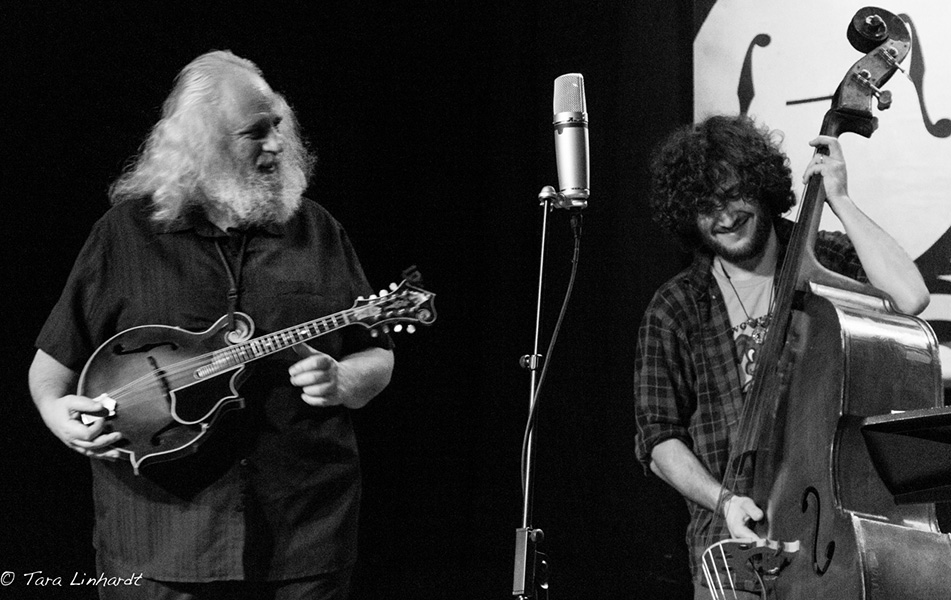 Mike Marshall and Darol Anger played traditional Swedish tunes with Vasen. Olov Johansson playing the nyckelharpe, Mikael Marin on viola, and Roger Tallroth on guitar.