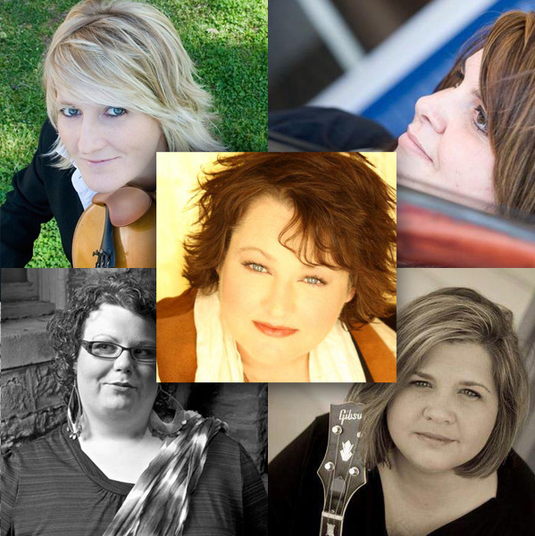 The group is built around the powerhouse vocals of three veteran singers: Dale Ann Bradley, Tina Adair and Gena Britt. Joining them will be Beth Lawrence on bass and Deanie Richardson on fiddle, both of whom will also help with the vocals. Britt is playing banjo, Adair mandolin, and Bradley guitar. This will be something to see – and hear!