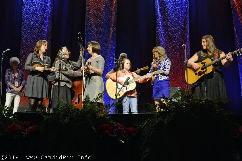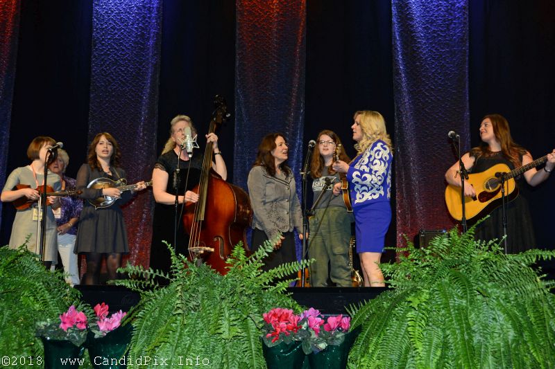 The evening was closed out with a “Ladies Night All-Star Jam,” hosted by Rhonda Vincent. She was joined by all of the ladies that performed throughout the day along with some other guests. Eight year old Ashlyn Smith wowed the audience with her picking. She did the Clinch Mountain Backstep and took her break on Liberty. This youngster from Louisville is one to watch for! The final “special” guests were Radio Ramblers lead singer, Duane Sparks’, “sisters” Kaitlyn and Hunter Boo Boo. All of the rest of the ladies were far, far prettier!