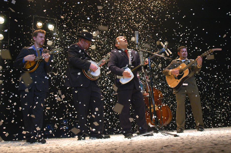 Takeharu Kunimoto & Last Frontier at the Parco Theatre in Tokyo in 2007 - photo by Jim Sledge/ETSUDuring his year at ETSU Kunimoto assembled his own band, The Last Frontier, comprised of talented ETSU students and alumni. The band’s brilliant performing style won over U. S. audiences with its exuberant music—both bluegrass and just enough Japanese rokyoku to engage and amuse without overwhelming them. Well after the conclusion of his official residency the band toured repeatedly in the United States, Canada and Japan.
