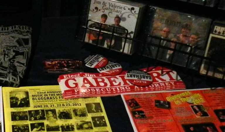 We performed to a large and appreciative audience who had the good taste to laugh at our jokes, and closed the show after boisterous shouts for an encore (as opposed to the obligatory kind urged by an MC that has become commonplace). One of the more interesting things I’ve had happen was during an encounter at our product table. I had forgotten to announce during the show that I’m running for Prosecuting Attorney in Lincoln County, West Virginia, where I’ve served as as a part-time Assistant Prosecutor for the past 13 years, but as a conversation starter I had put out a few bumper stickers and buttons, knowing some folks collect such things.