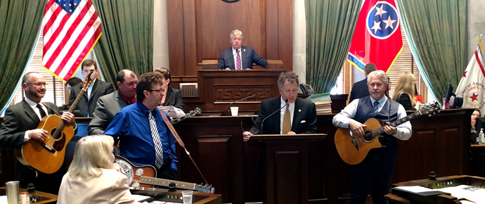 Today was a big day for The Farm Hands, when the bluegrass quartet was invited to perform on the floor of the Tennessee Senate, and hear the reading of a proclamation honoring them for their success as musical ambassadors for the state of Tennessee.