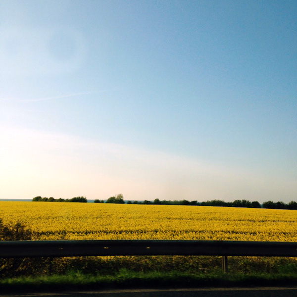 Jumping ahead here to after our gig at the Gulpener Festival in Utrecht, which I believe Ben covered: Fields of bright yellow canola flowers and windmills accompanied us all along the countryside of Holland and into Germany – blazing yellow strips and fields illuminated the view as we ticked off the kilometers, up past Hamburg (which always makes me think of the Beatles, of course) and then past Lübeck and over the bridge to Fehmarn, one of the places where Germany touches the Baltic Sea.