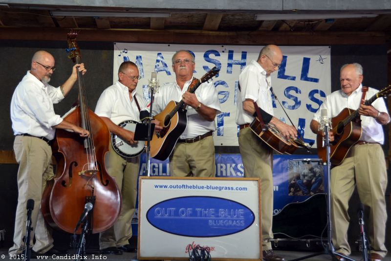Thursday was the official opening of the 18th Marshall Bluegrass Festival held on the Calhoun County Fairgrounds in Marshall, Michigan. Local favorites and Southeast Michigan Bluegrass Music Association member band, Out of the Blue, opened the show. They return Friday for two big sets.
