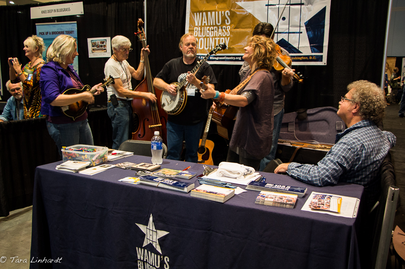 I have found that while what happens on the stages and showcases is definitely an important part of IBMA, but I think many folks will tell you that a lot of the magic happens here in small rooms and with people meeting each other, or reuniting with others in between all the scheduled activities. In the hotel lobbies and rooms, the exhibit hall, and hallways and venues many friends are made and many spontaneous jams ensue that often create some of the dearest memories for IBMA participants. There are also small showcases that happen in the exhibit hall and in the hotel rooms, as well as the bigger ones on the official programs, and bigger stages which all contribute to the overwhelming amount of good talent folks can see as they walk anywhere.