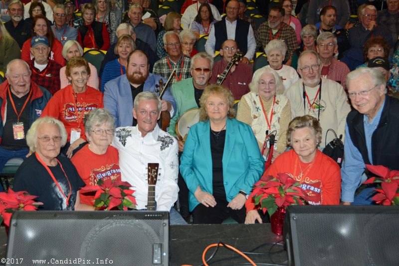 Tommy then made the statement that everyone has waited for: “I am cancer free!” Tommy, Lorraine, Carolina Road, and some of the festival staff joined the audience for a grand group picture. Lorraine said: “This is the largest Thursday evening crowd in the history of Bluegrass Christmas in the Smokies!”