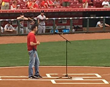 Last night, Tim Shelton sang the National Anthem ahead of the Cincinnati Reds home game against the St Louis Cardinals. It’s not the first time Shelton has been so honored by the team, and he reports that he is proud to represent the Reds and the good ol’ USA whenever they ask.