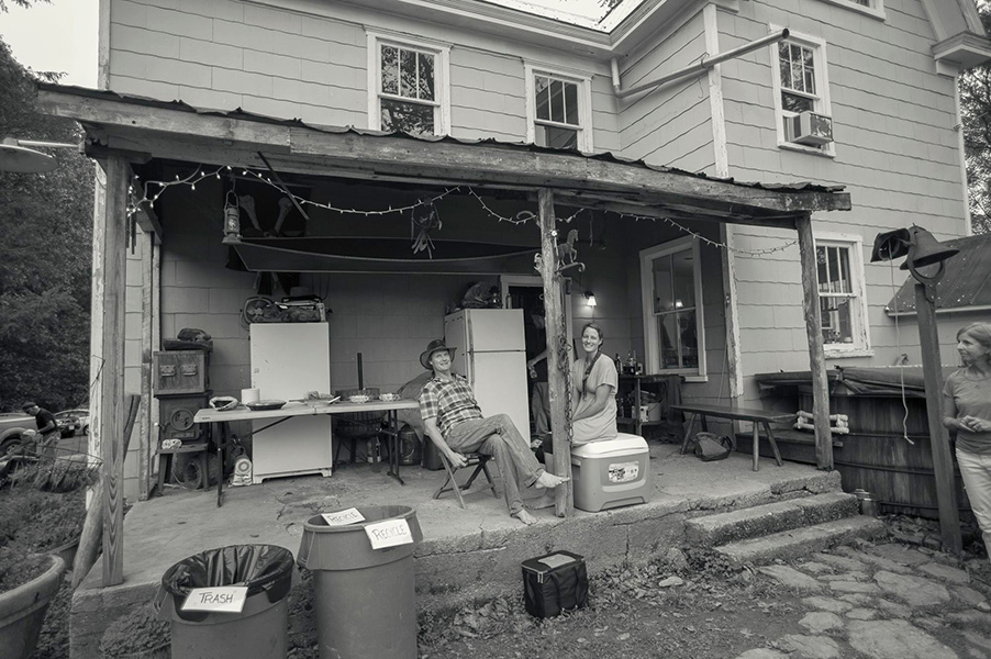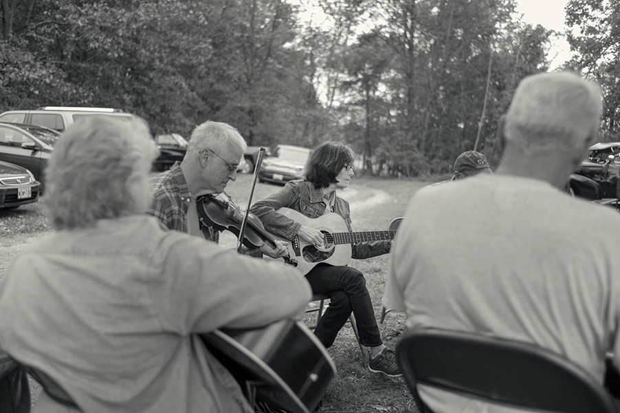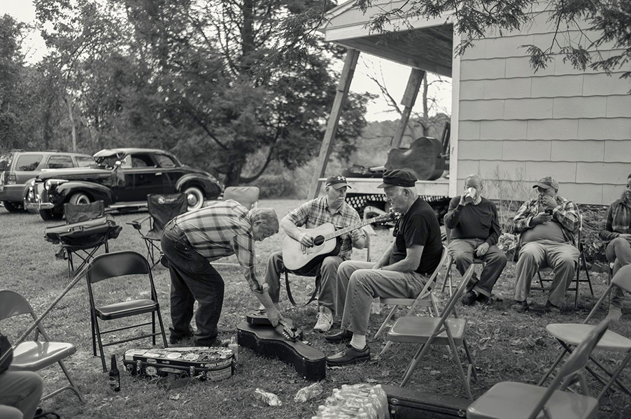 With the pastoral setting and the quaint country cabin, you might be fooled into thinking these are from a century ago, except for the modern instruments cases and automobiles.