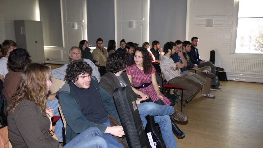 Tony Trischka was last week’s special Master Class presenter at the Berklee College of Music in Boston. As we reported this Spring, a major anonymous donor has made it possible for Berklee to bring in top professional banjoists each semester for the benefit of the school’s growing population of enrolled banjo students.