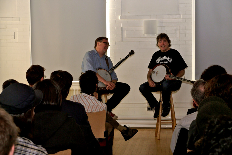 Berklee professor and banjo instructor Dave Hollender sent along some photos from Tony’s visit last Friday and Saturday, which came with an added bonus.