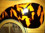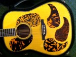 Each of Tortoguard’s standard handmade pieces comes with a 100% satisfaction guarantee and possesses its own set of unique qualities due to the liquid and dying processes that Pickett and Day use during fabrication. Customized pieces are available upon request, as is duplication of existing pickguards of every size and type. One customer, a lady who takes private guitar lessons from Pickett, even had her name subtly included on a piece she ordered recently.