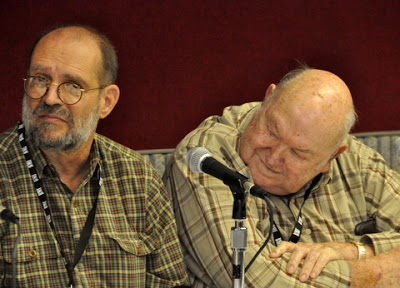 George Gryhn and Tut Taylor at a panel during World of Bluegrass 2010 - photo by Ted Lehmann“I first met Tut Taylor in the mid-1960s at the Asheville, North Carolina Folk Music Festival. We soon became fast friends. Shortly after I moved to Nashville in 1969, Tut and I began discussions about possibly forming a partnership to open a music store. The result was GTR Inc in January 1970. The name was an abbreviation for the word “guitar” and the initials for George, Tut, and Randy. Tut and I were equal partners in the venture during the first nine months of business. Randy Wood was not a partner in the business, but was our first repairman and certainly a part of the original success of the venture since he had a reputation as one of the finest repairmen in the country at that time. Tut was an extremely creative musician known for his unique flatpicking style on the Dobro as well as the mandolin. He had been wheeling and dealing instruments for many years prior to meeting me and had hired Randy Wood and Bob Givens to work with him in the workshop which he had set up in the same building as his sign painting shop in Milledgeville, Georgia. When we first opened the store, I was 25 years old and Tut was 46 years old. It feels hard to believe that Tut was 91 years old this year and that he is now gone. He will be missed.”