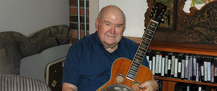 Tut TaylorTut Taylor, The Flatpickin’ Dobro Man, died on Thursday morning April 9, 2015, at the Wilkes Regional Medical Center in North Carolina. He was 91 years old.
