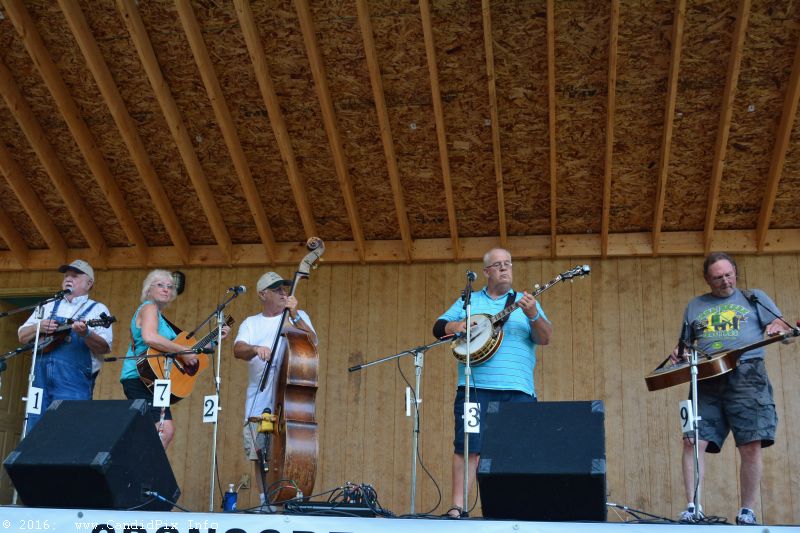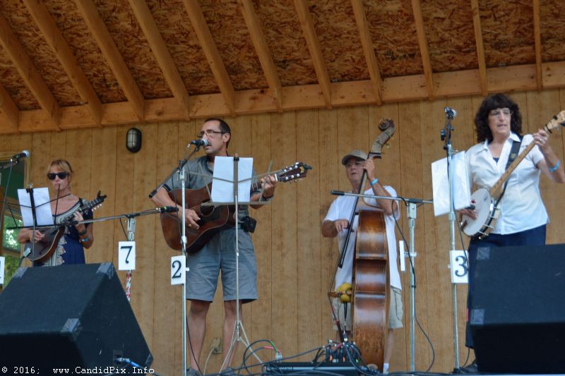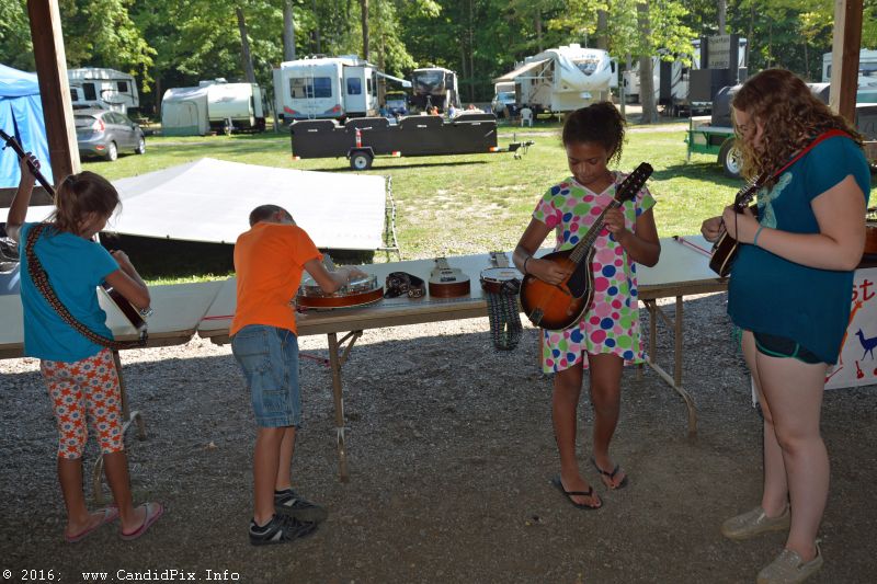 Activities for festival attendees at the Milan Bluegrass Festival in Milan, Michigan kicked off Wednesday afternoon with a jam and petting zoo hosted by the Southeast Michigan Bluegrass Music Association. Jammers, listeners, and kids of all ages had a fine time. The Association also hosted a potluck supper for all of the early festival attendees.