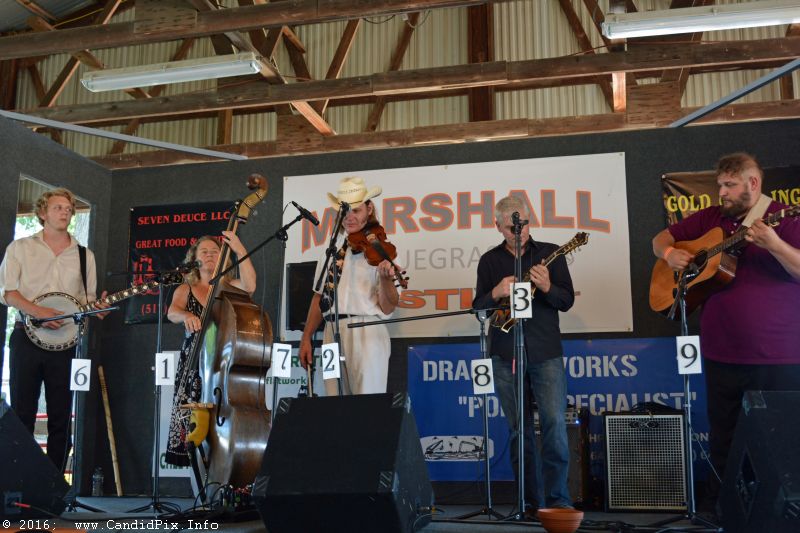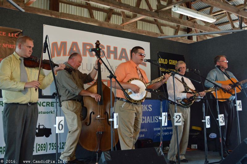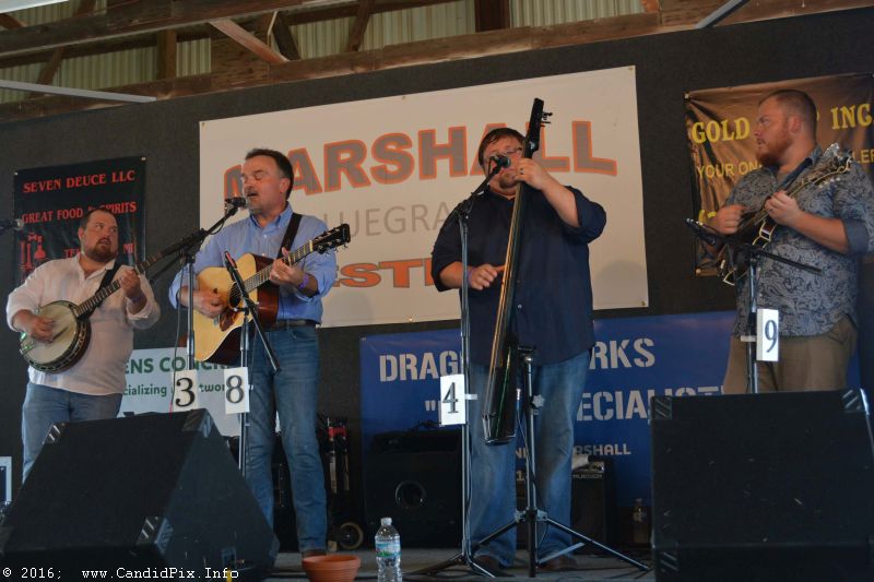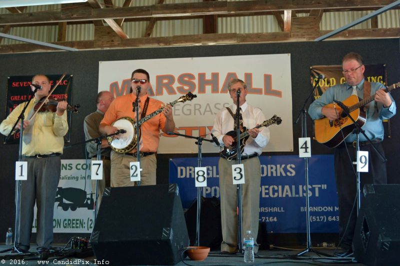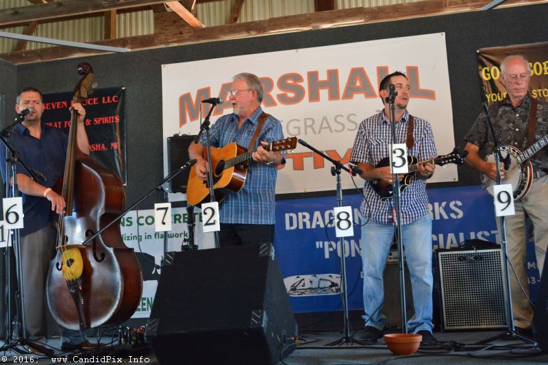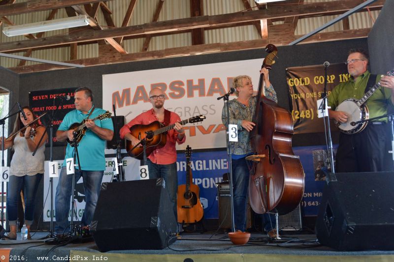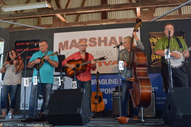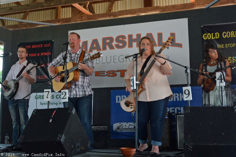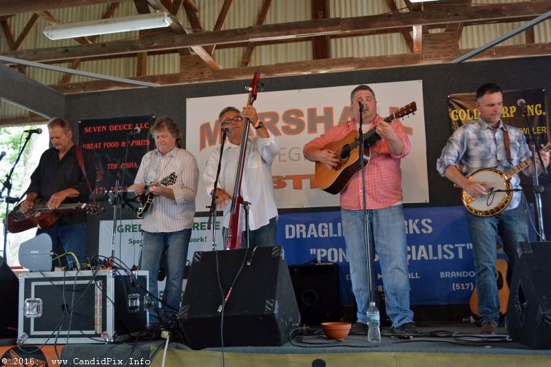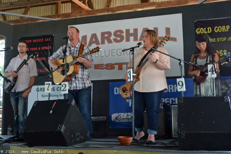 Blue Mafia at the 2016 Marshall Bluegrass Festival in Michigan - photo © Bill WarrenFriday at the Marshall Bluegrass Festival opened with a newly formed band, The Local Mash, created by Tony Zapolnik and his fiancé, Jennifer Strickland. Jennifer is a well-known bassist/singer/songwriter in the bluegrass world. They are joined by Michiganders Danielle Smith and Chad Phelps. Indiana/Michigan band Echo Valley put in their second day at the festival.