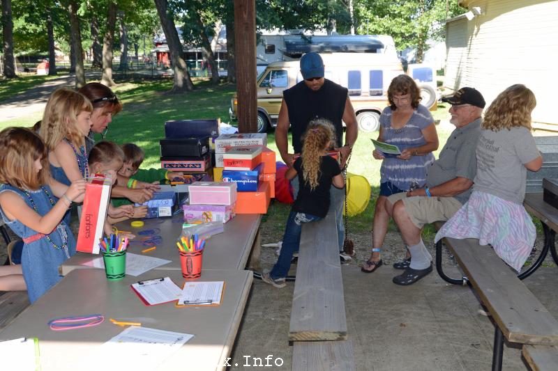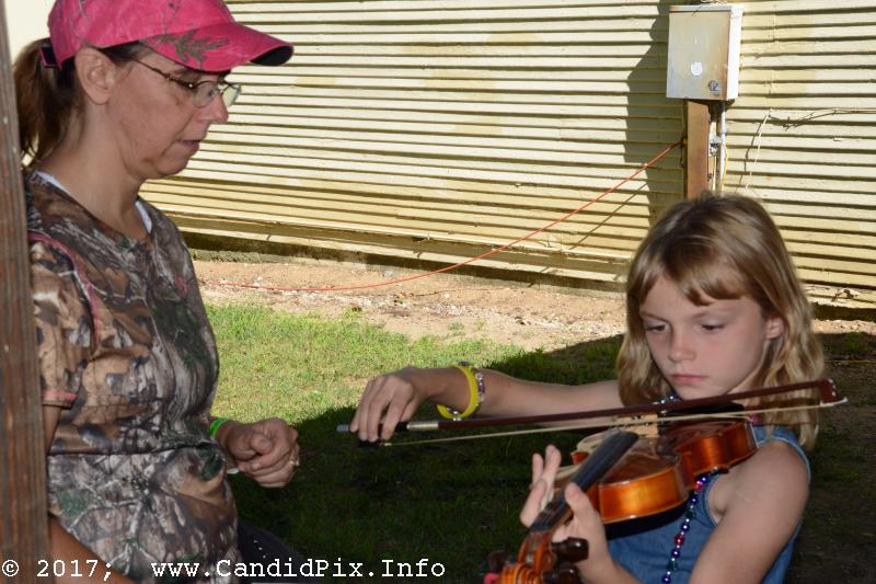 Saturday saw activities prior to the stage show. Fiddlin’ Dixie with Lil Friends entertained over 20 children at the Kiddie Corner. The kids all learned a little about canjos, banjos, fiddles mandolins, guitars, and basses in a variety of ways, from coloring instrument pages to handling and learning about real instruments. It is always exciting to see a youngsters eyes light up when he or she makes sound come from an instrument for the first time.