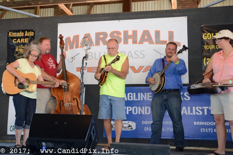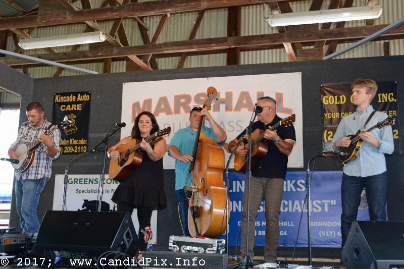 West Michigan’s Out of the Blue was up next with their solid traditional bluegrass. New Outlook came from Wapakoneta, Ohio with their fine band and their music store. They offer great music and great music merchandise. Columbus, Ohio’s Out of Mind made the first of their two day run at Marshall. This is an up-and-coming band that is well worth seeking out. Larry Efaw brought the Bluegrass Mountaineers to Marshall to deliver the mountain sounds of the Stanley tradition.