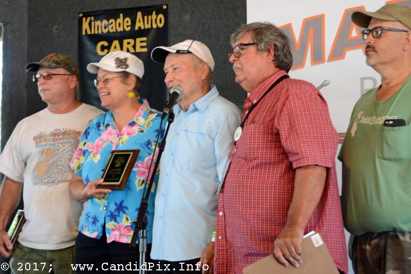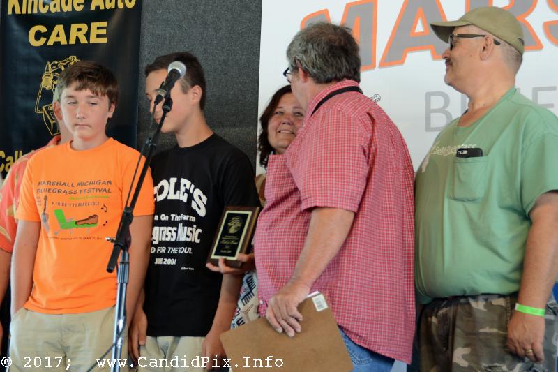 The Southeast Michigan Bluegrass Music Association inducted members into their Hall of Honor. The inductees are Maggie and Gary Bilby. They are stalwarts of Michigan, Indiana, and Ohio bluegrass activities. Also inducted was the late Burke Cole, the promoter of the Marshall Bluegrass Festival until his passing in 2013. His widow, Tina, and twin sons, Cody and Dakota, accepted the award.