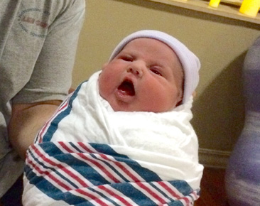 He came in at 8 lbs, 9.6 oz, stretching out to 22 inches long.