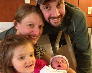 Mom, dad, baby and big sister, Claire, are all doing well.