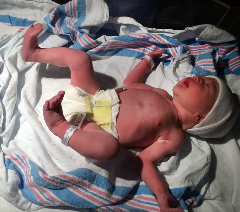 She came in at 5 lbs 9 ozs, and 20 ” long, born at 1:31 a.m. Everyone is doing well.